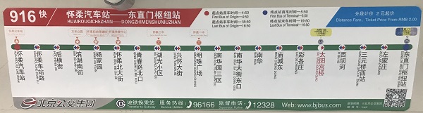 2. 东直门交通枢纽大楼内的“916快“”公交